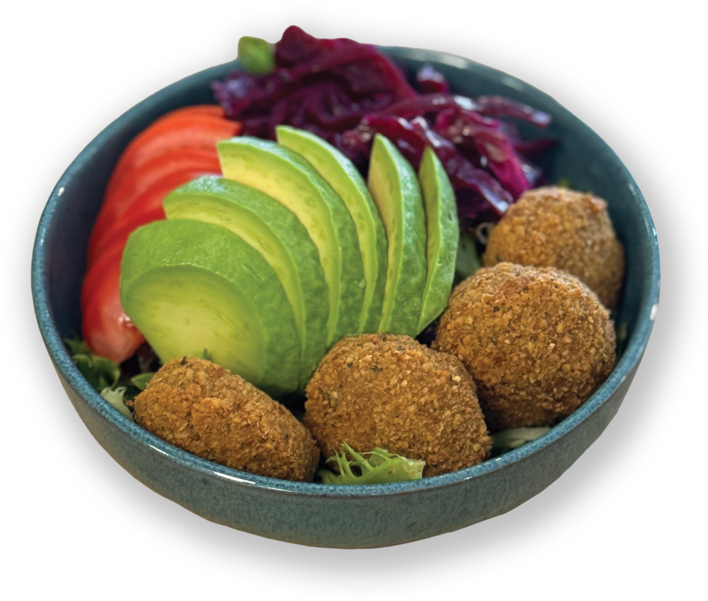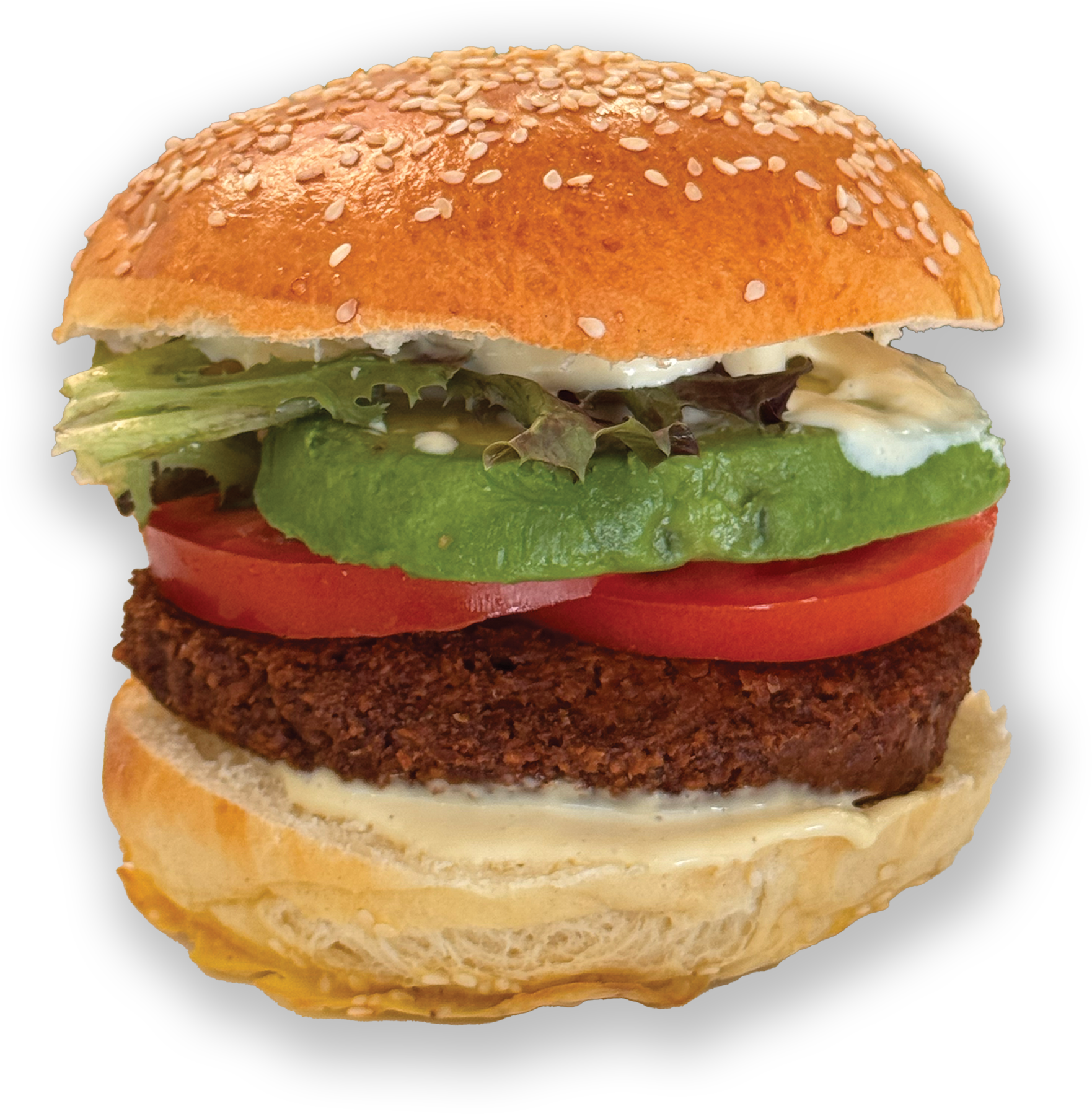 Pain burger, falafel, avocat, tomate, laitue, sauce tarator (sésame)